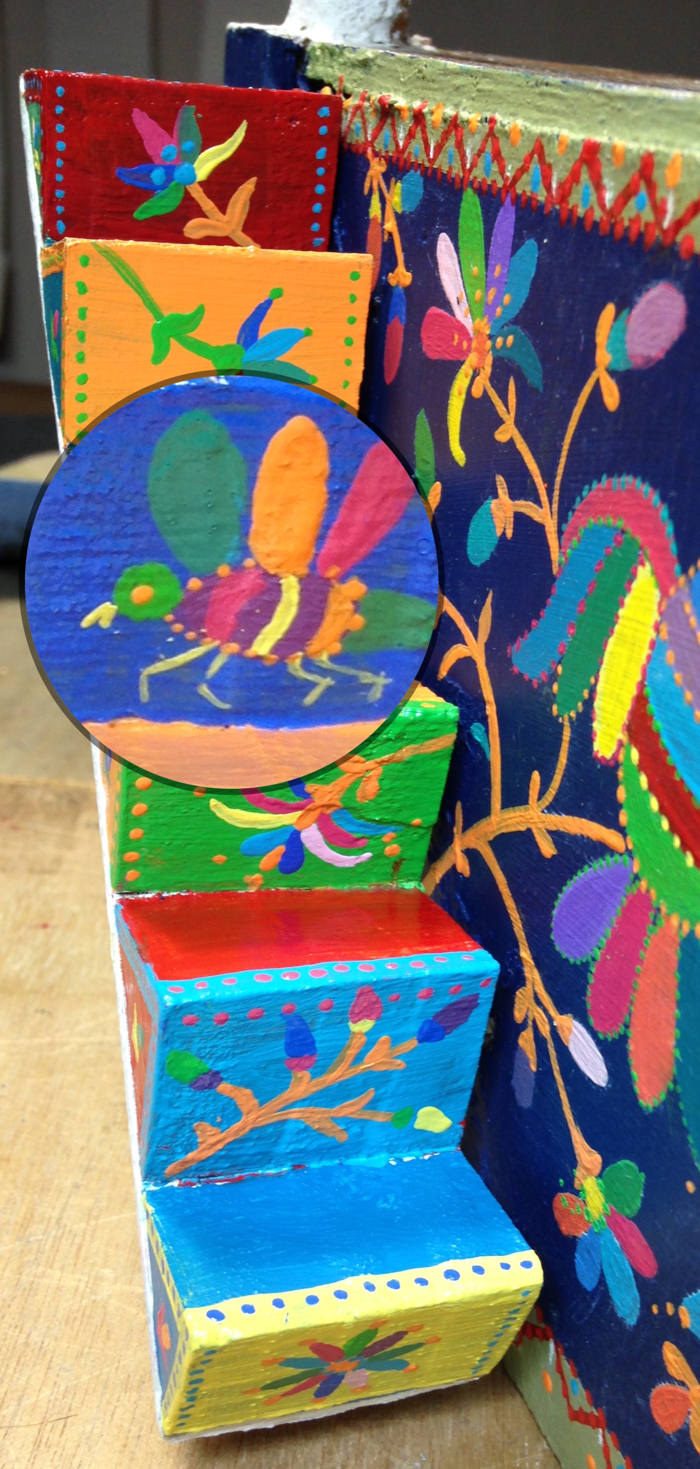 Deuxième étape, la peinture. J’ai choisi 6 couleurs parmi celles utilisées sur le socle.