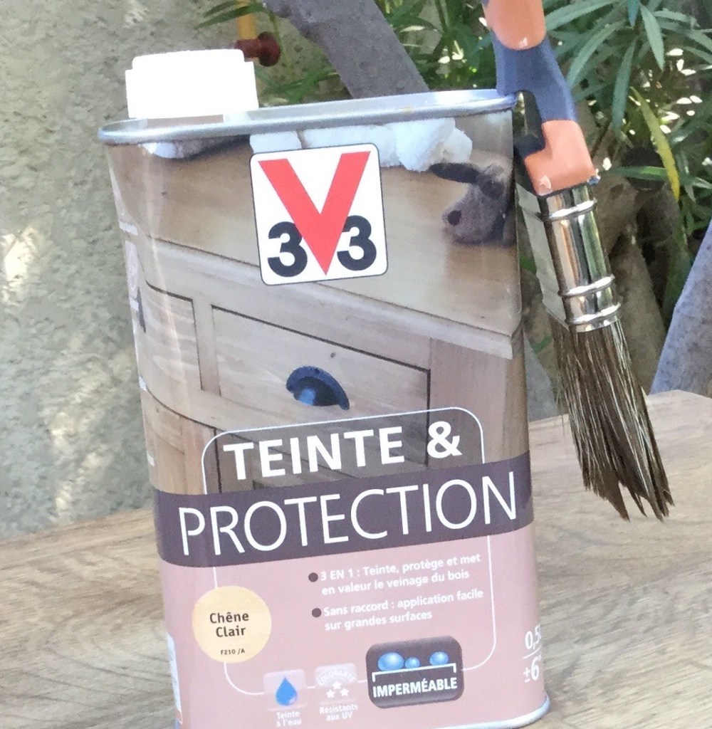 L’étape suivante : passer un produit pour teinter légèrement et protéger les parties destinées à rester en bois naturel.