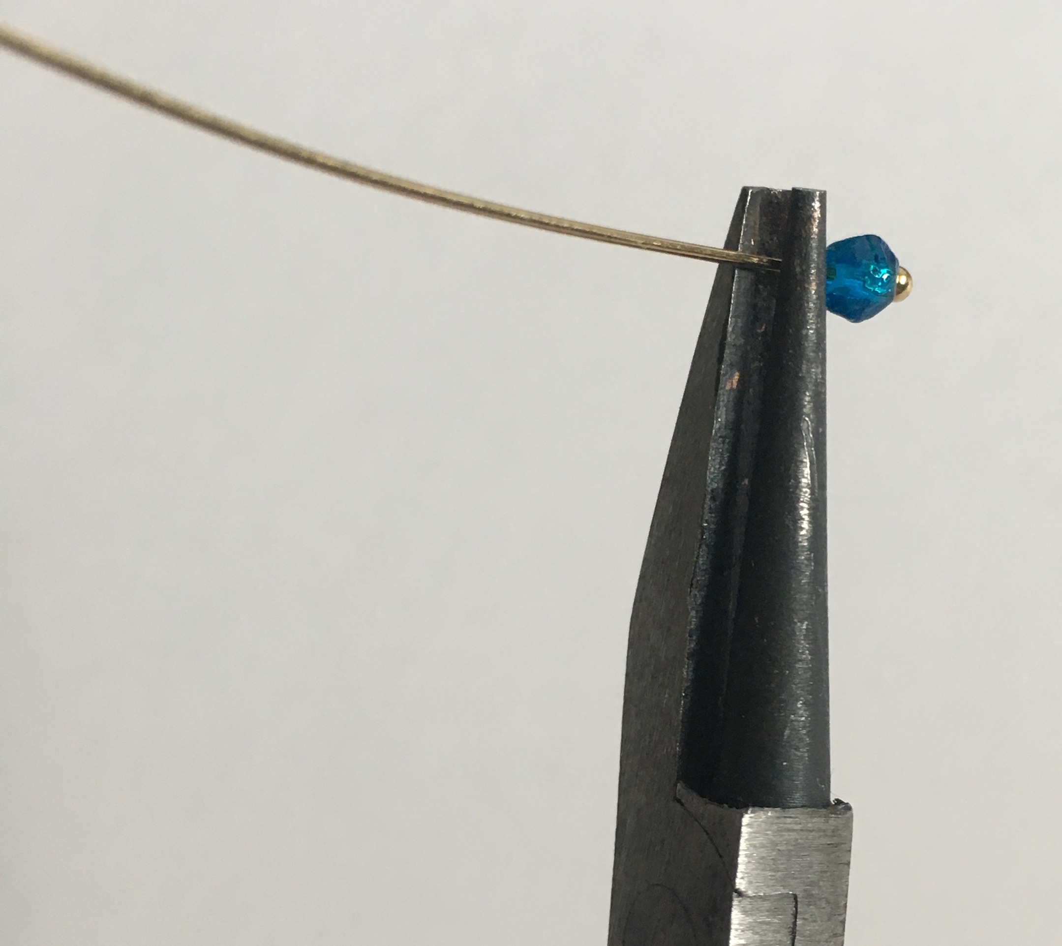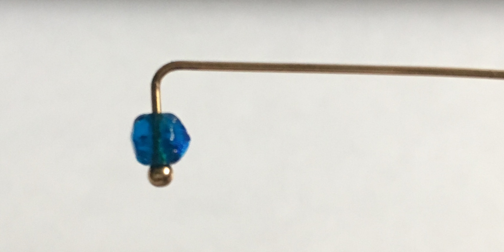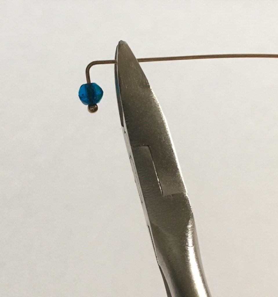 Enfiler ensuite votre perle sur le clou et à l’aide d’une pince spéciale, courber le clou à angle droit.