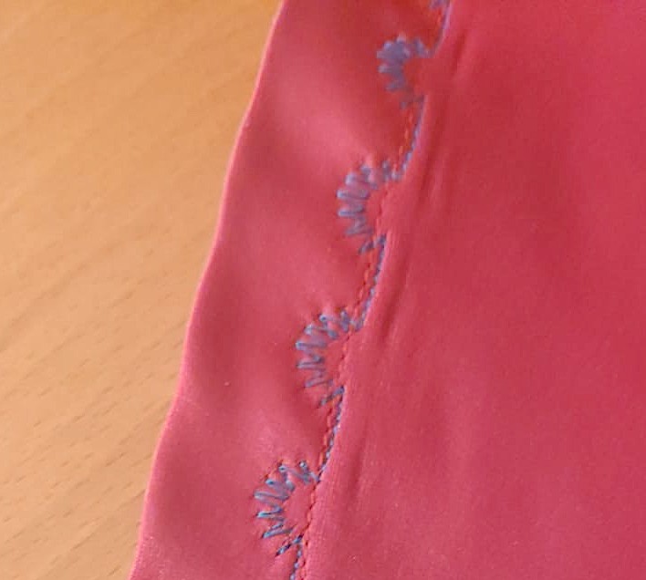 Choisir un bleu un peu plus clair et un autre point de broderie pour le bas de la jupe. Ici une sorte de point de feston. Lancer la broderie.