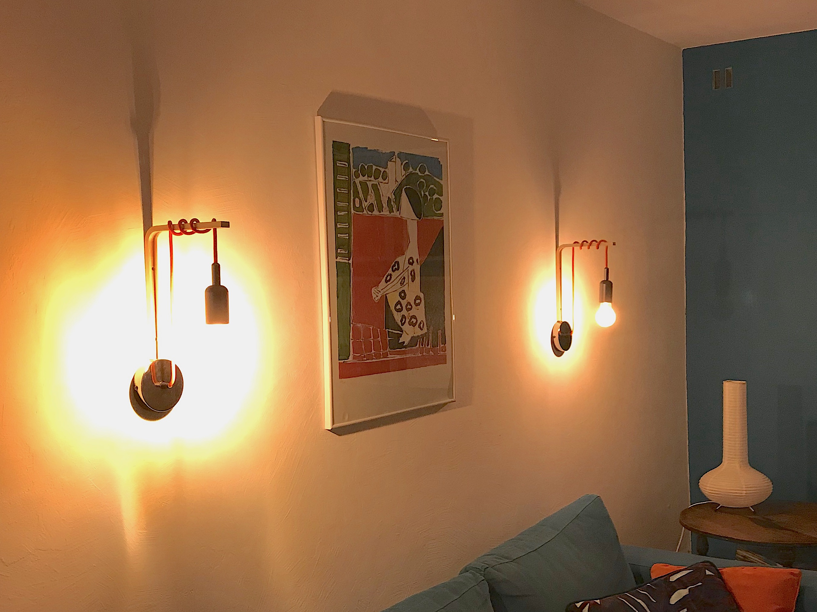 Après la commode rénovée, voici un autre projet pour la maison. Au départ, il s’agissait d’un chambre dans laquelle deux appliques, de part et d’autre du lit constituaient le système d’éclairage. Lors de la transformation de cette chambre en salon, il a fallu trouver des appliques avec une puissance d’éclairage plus grande que des lampes de chevet et un style plus adapté à ce lieu. Ne trouvant pas ou sinon à des prix élevés ce que je cherchais, j’ai décidé de les faire moi-même. Voici donc le résultat, une réalisation facile et particulièrement peu onéreuse.