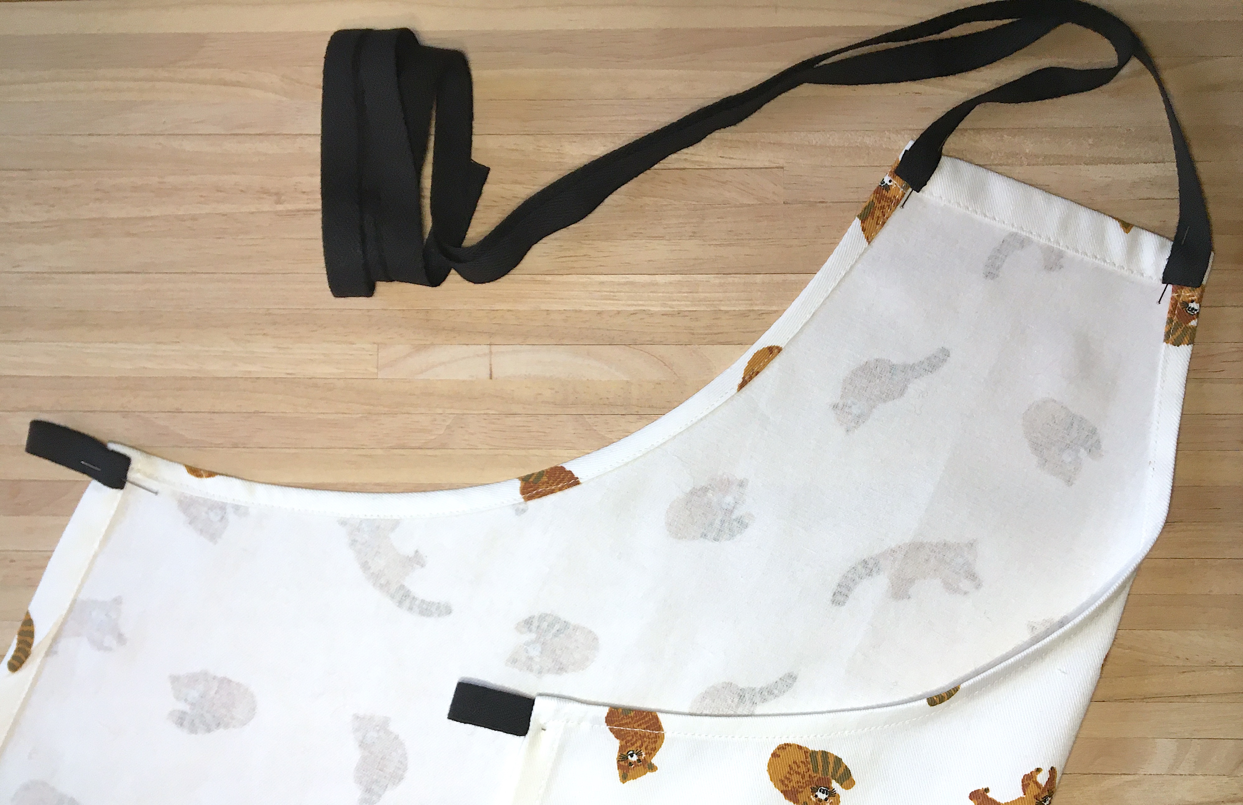 Un tablier de cuisine pour un petit marmiton qui fait ses premiers pas de chef voilà un ouvrage facile à faire et qui se prête à un grand nombre de versions. Selon le tissu choisi on peut soit rester dans le thème cuisine ou au contraire mettre en avant un univers différent, ici des animaux. Comme vous pouvez le voir dans l’article un tablier pour cuisinier en herbe, le point de départ est un torchon ce qui facilite encore la réalisation. Cet ouvrage se prête aussi à une personnalisation que je vous proposerai dans le prochain article.