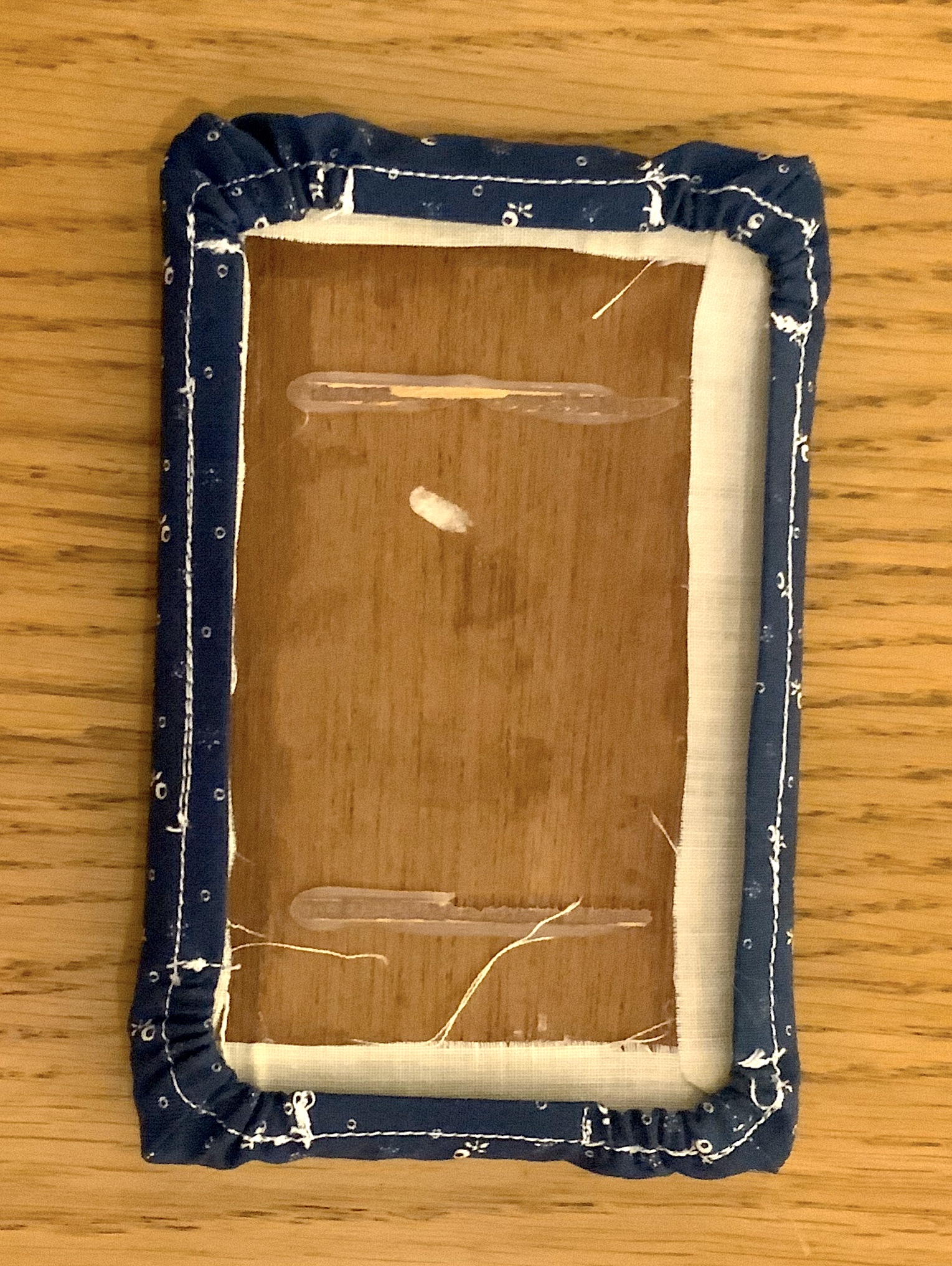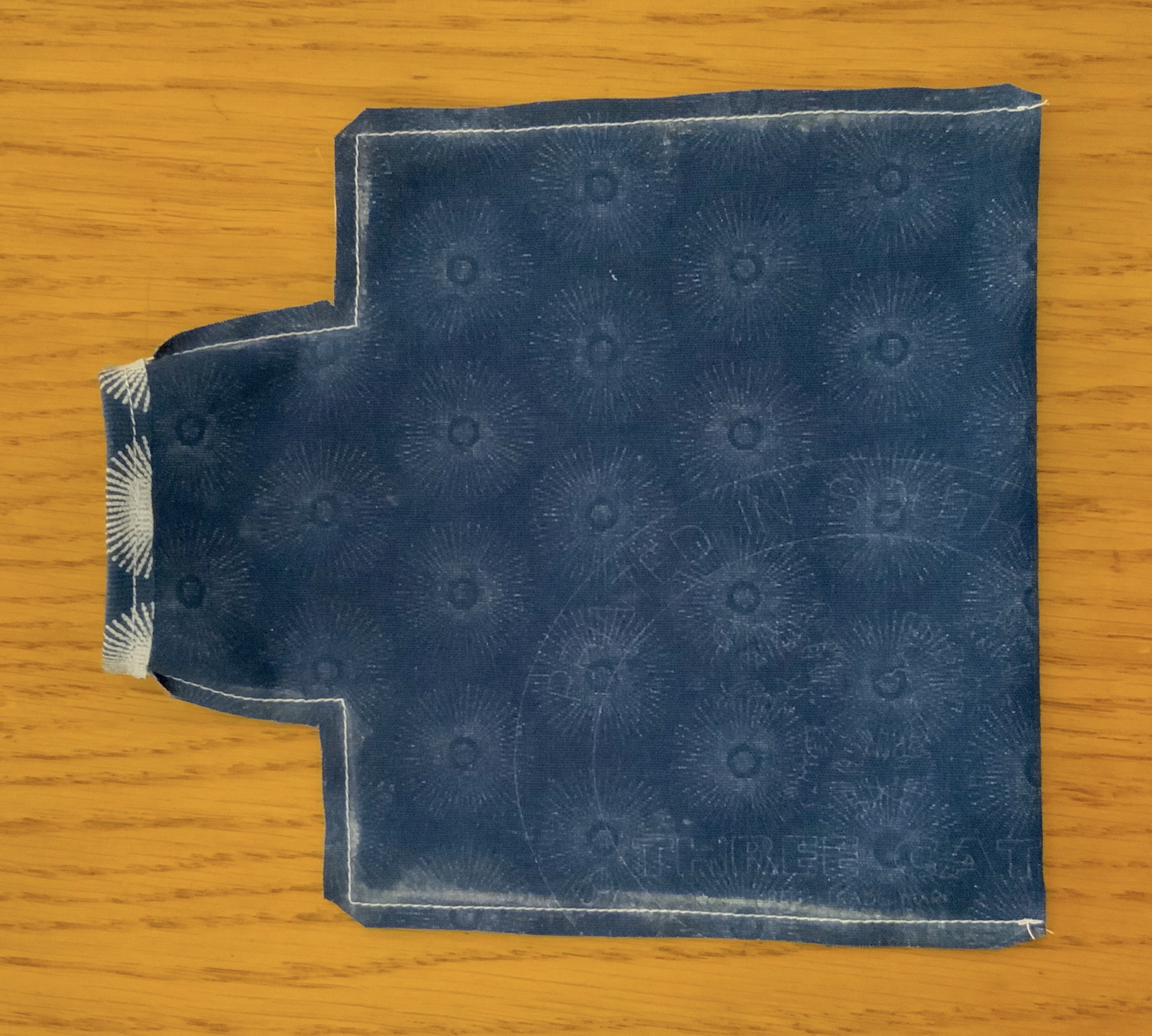 Couper le tissu. Repasser l’ourlet puis coudre les angles.