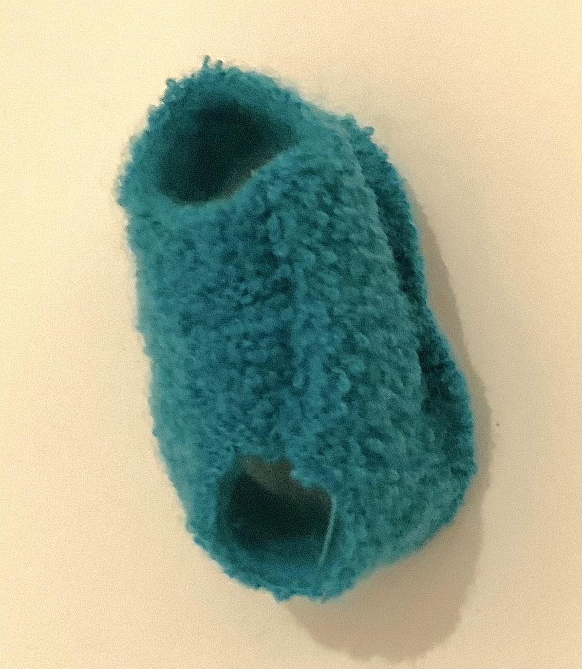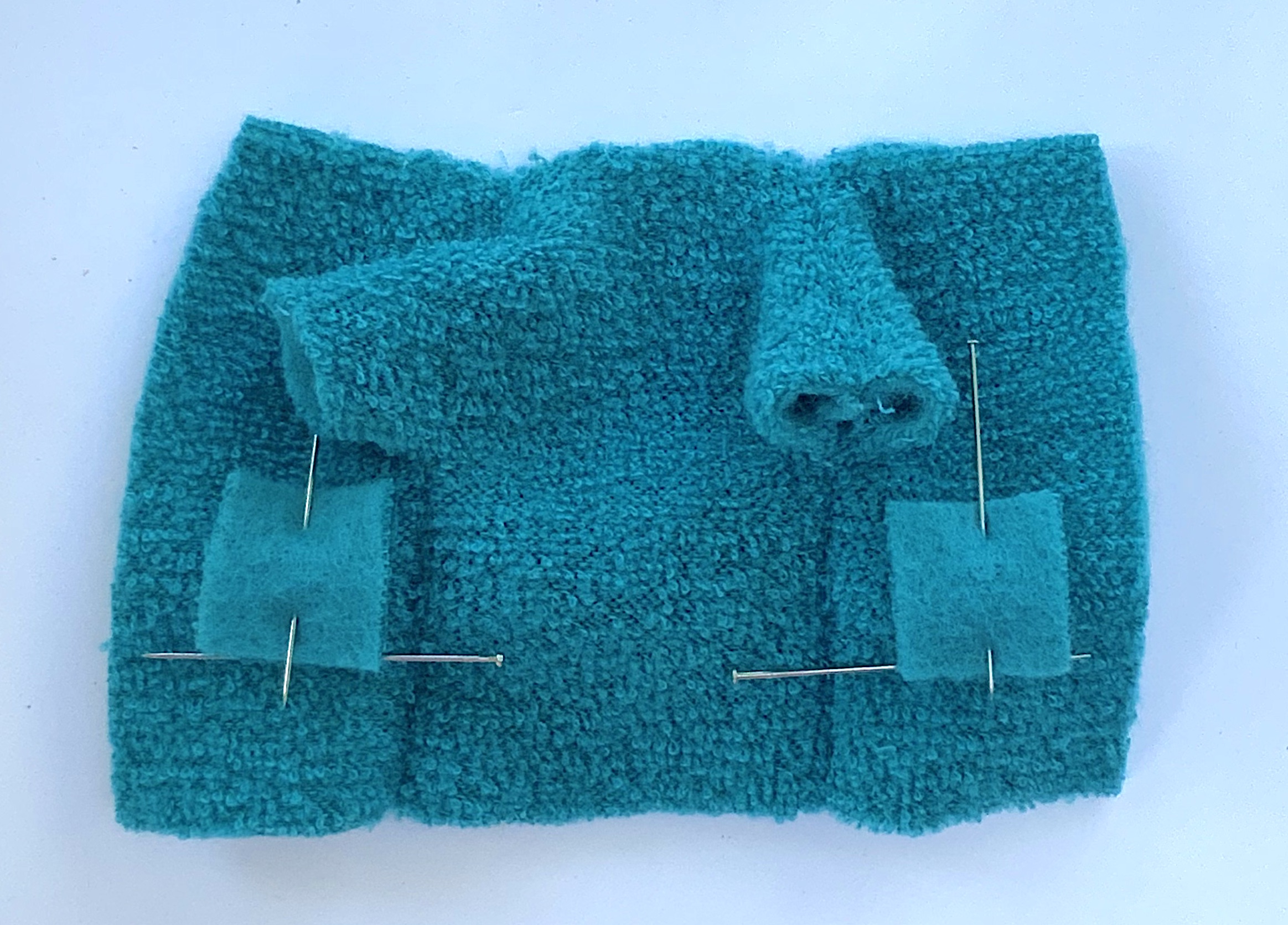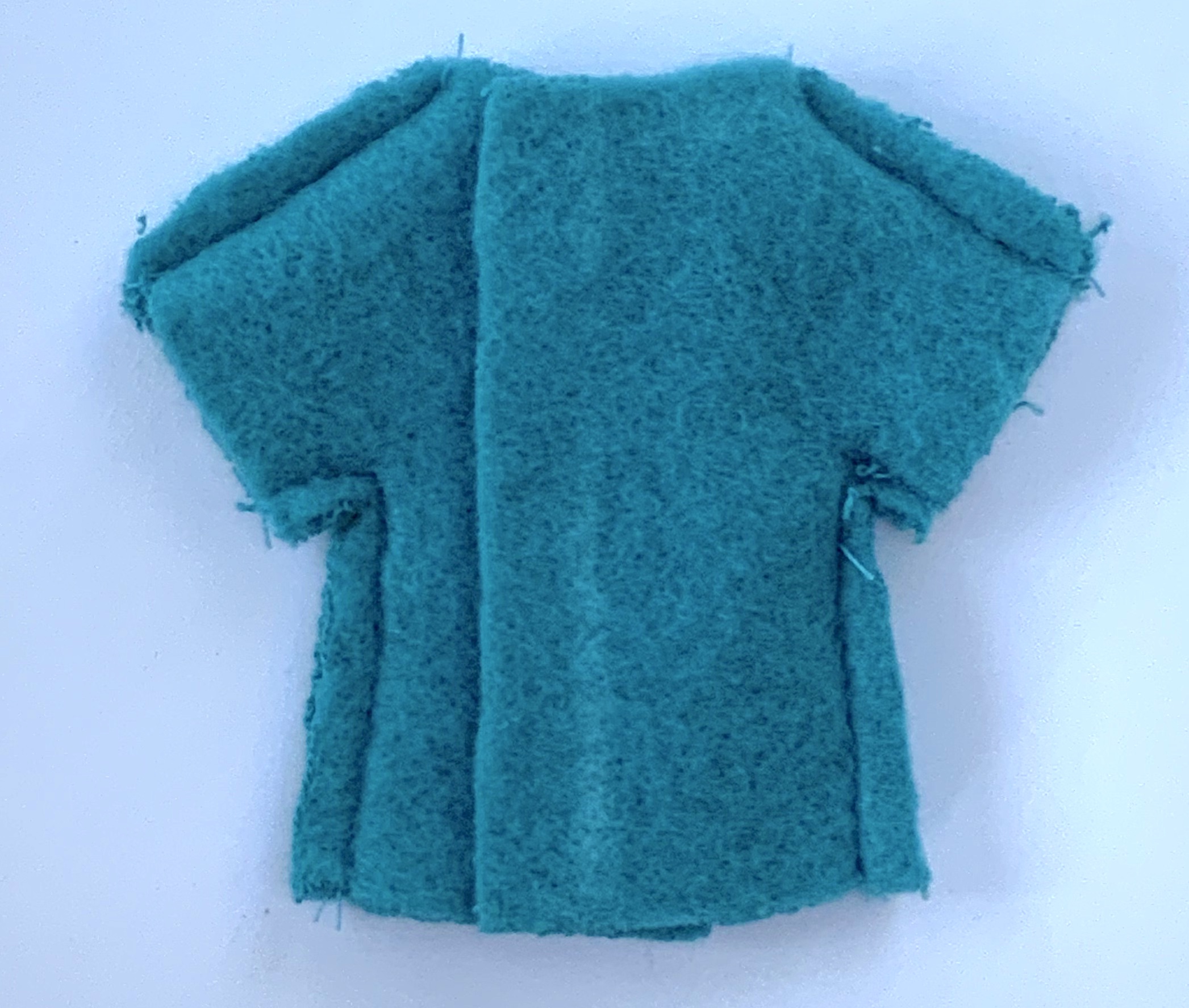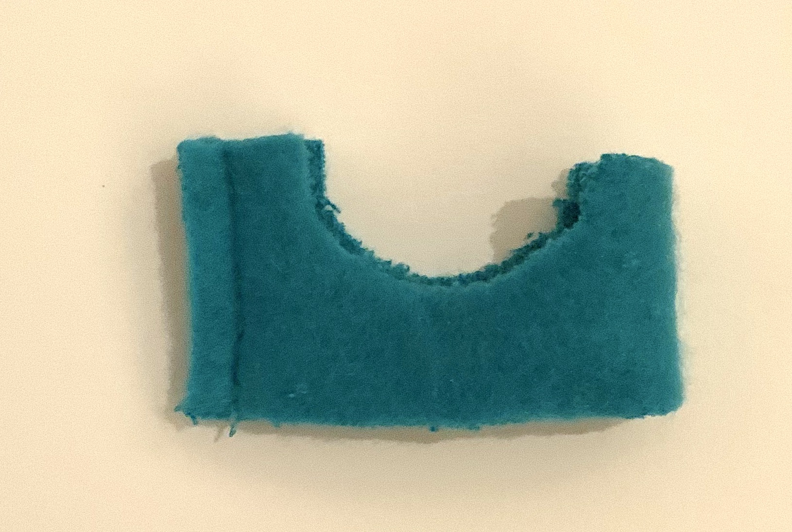 - Un petit morceau de tissu double face : un côté bouclette et un côté polaire duveteux. Ce tissu ne s’effiloche pas donc les bords ne nécessitent aucune finition particulière ils sont donc dits « couper à cru » ou appelés bords francs ou bords crus.