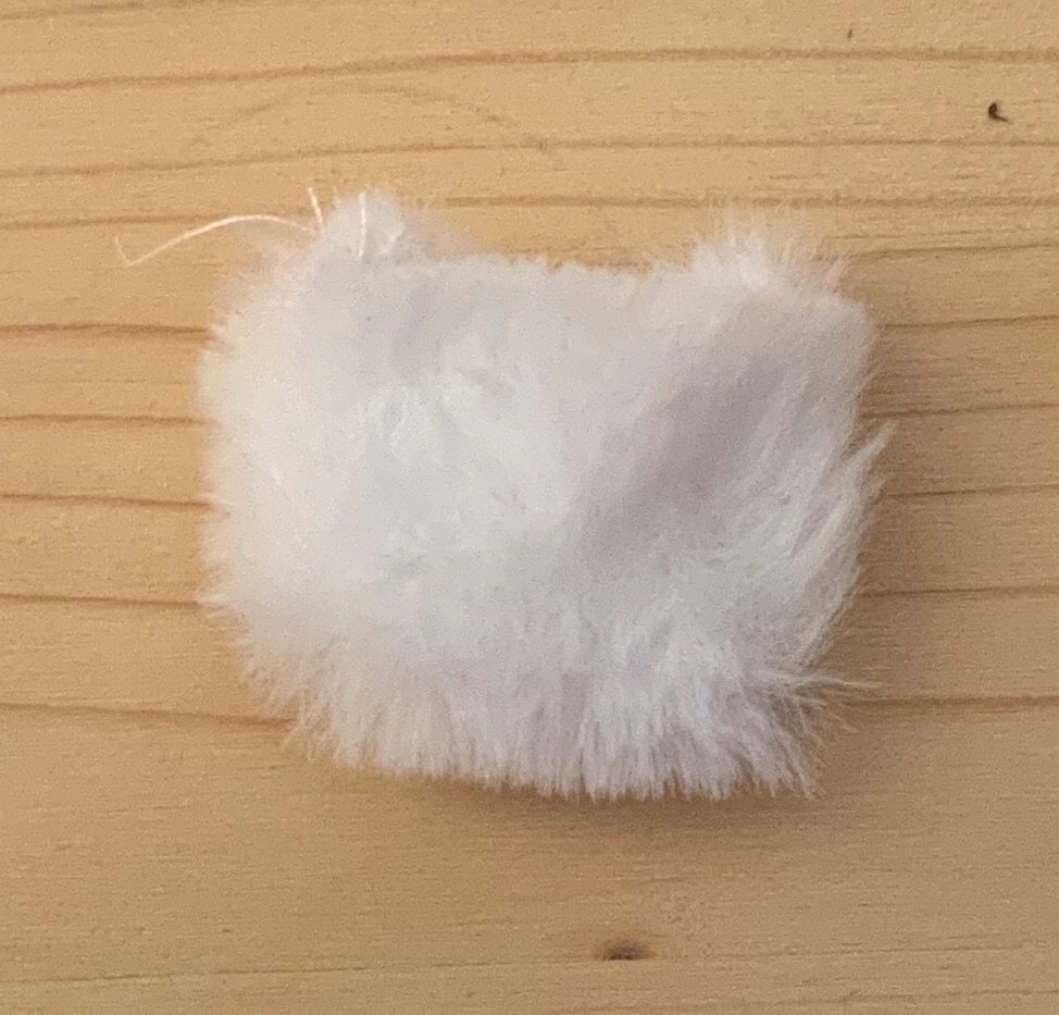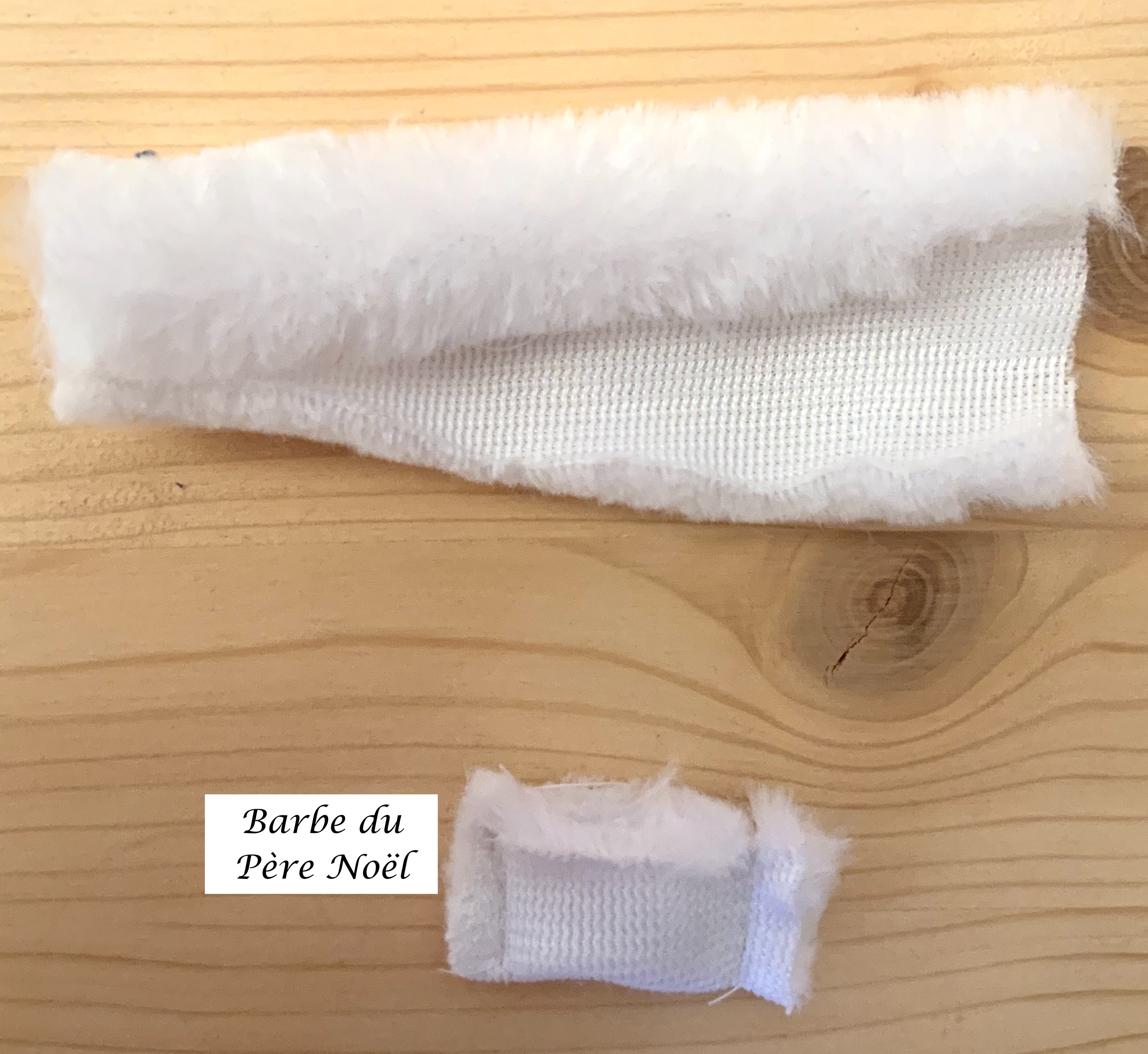 Coudre un rectangle dans la fourrure pour réaliser la barbe. Plier un morceau en deux et coudre sur 2 côtés puis retourner.