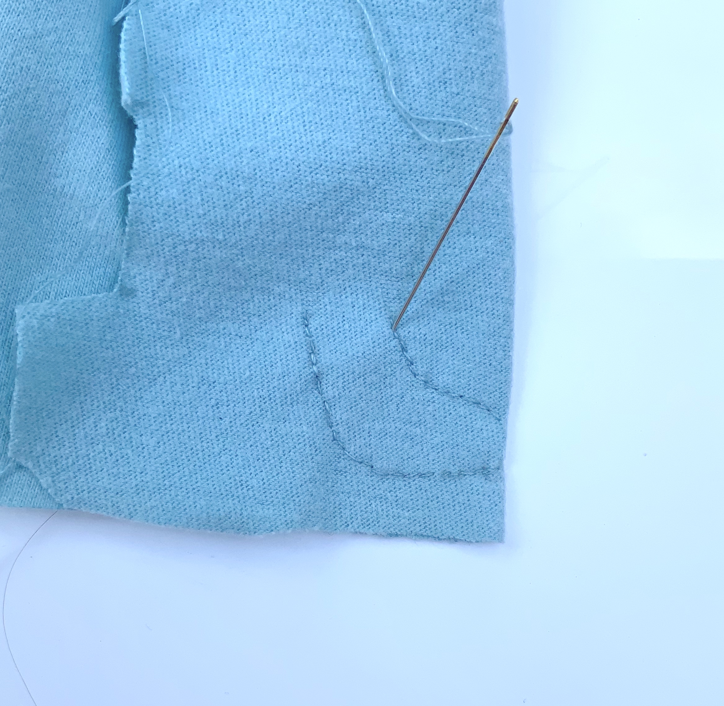 Couper les fils, cranter sous les bras.