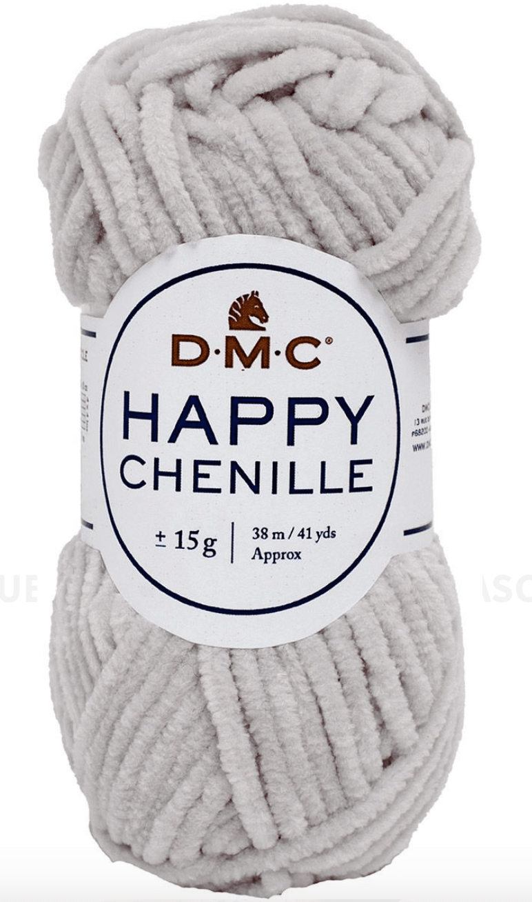 - Une pelote de 15 g de Fil velours DMC Happy chenille ici gris perle