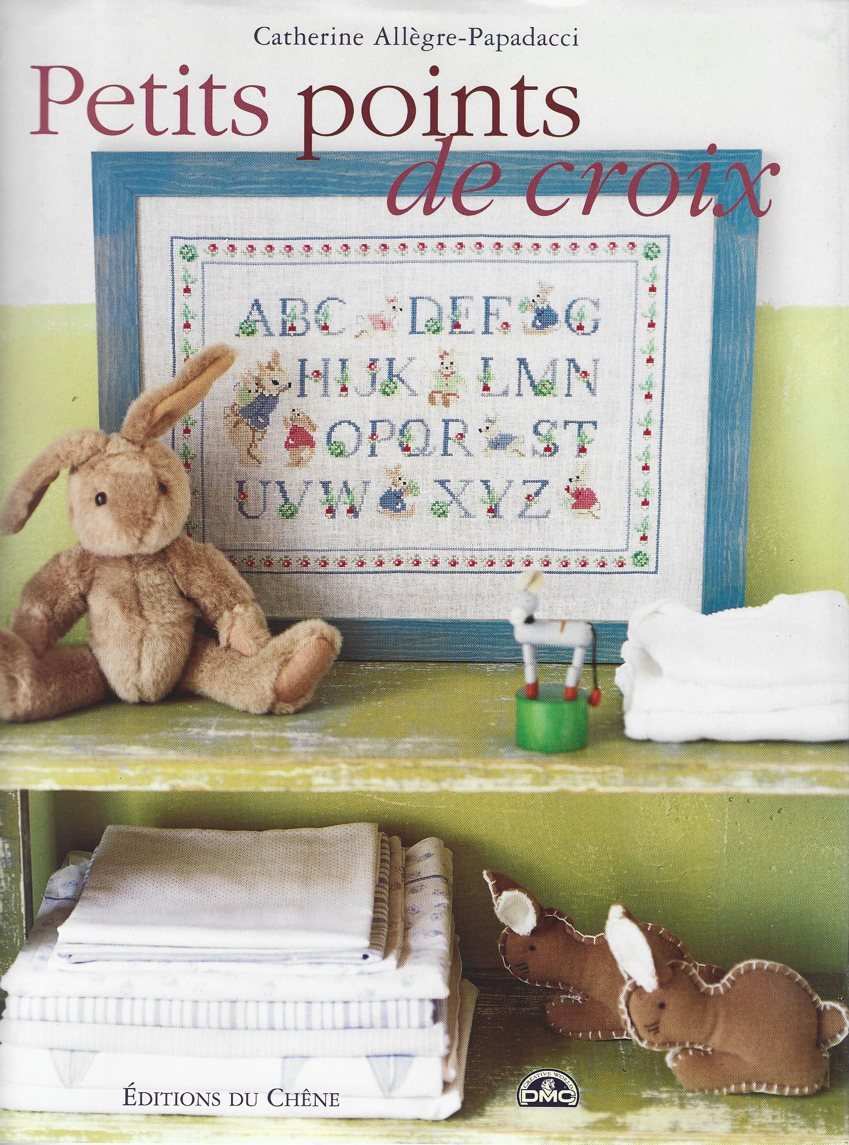 Quelles que soient les époques, le bavoir reste un accessoire indispensable pour bébé et ce dès la naissance. En farfouillant dans les brocantes, on peut en voir, mêlant dentelles et broderies dans de véritables œuvres d’art. Ici il s’agit d’un modèle à broder au point de croix, à points comptés sur un bavoir prêt à broder. Il s’agit d’un ancien ouvrage qui figure dans un de mes livres Petits points de croix, aux éditions du Chêne. Rangé depuis de longues années au fond d’un tiroir, une nouvelle naissance a été l’occasion de le réactualiser en changeant le prénom. Il a fallu découdre délicatement le prénom original pour le remplacer. La grille de point de croix fournit aussi des petits motifs à broder séparément sur d’autres petits ouvrages, tout comme l’alphabet qui permet d’écrire tous les mots et donc tous les prénoms pour personnaliser tous les cadeaux !